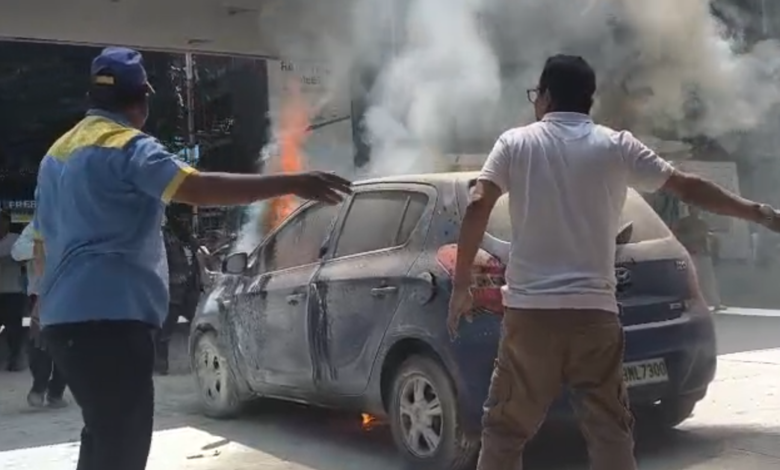ఎర్రమంజిల్ పెట్రోల్ బంకులో కారులో మంటలు