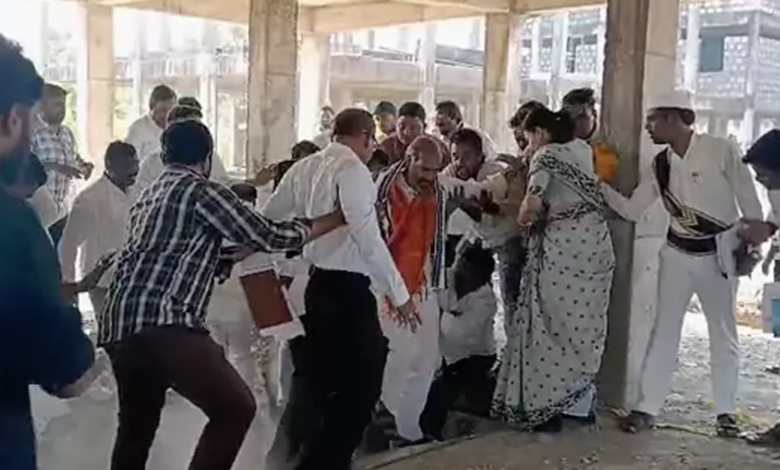 Aadi Srinivas: వేములవాడ ఎమ్మెల్యే ఆది శ్రీనివాస్ పెను ప్రమాదం తప్పింది. వేములవాడ మున్సిపల్ పరిధిలోని డబుల్ బెడ్ రూమ్ ఇండ్లను పరిశీలించేందుకు ఎమ్మెల్యే వెళ్లగా డబుల్ బెడ్ రూమ్ బేస్మెంట్ పరిశీలిస్తుండగా ఒకసారిగా బేస్మెంట్ కుంగింది. భయాందోళనకు గురైన అధికారులు, నేతలు వెంటనే అప్రమత్తమైన ఎమ్మేల్యేను కాపాడారు. ఎమ్మెల్యే వెంట స్థానిక నేతలు, కలెక్టర్ గరీమ అగ్రవాల్ ఉన్నారు.