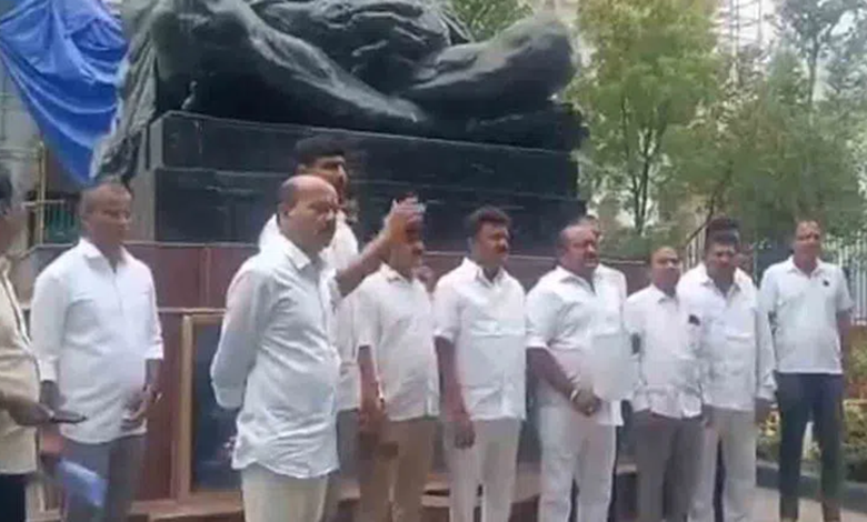 BRS: అసెంబ్లీలో బీఆర్ఎస్ ఎమ్మెల్యేలు మెరుపు ధర్నా నిర్వహించారు. ఫిరాయింపు ఎమ్మెల్యేల విషయంలో త్వరగా నిర్ణయం తీసుకోవాలని స్పీకర్ను కలిసేందుకు వచ్చారు. అసెంబ్లీ ఆరణలో గాంధీ విగ్రహం దగ్గరకు వచ్చి, పార్టీ మారిన ఎమ్మెల్యేలను వెంటనే డిస్ క్వాలిఫై చేయాలని నినాదాలు చేశారు. స్పీకర్ అందుబాటులో లేకపోవడంతో గాంధీ విగ్రహానికి వినతిపత్రం ఇచ్చారు BRS ఎమ్మెల్యేలు.