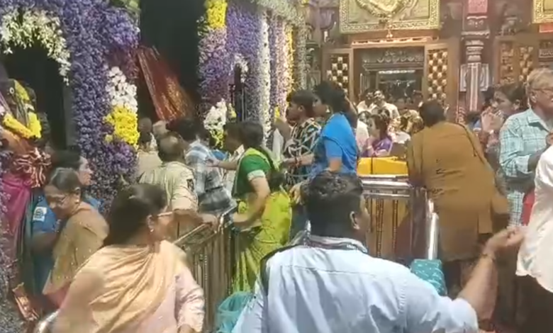 Vijaywada: విజయవాడ ఇంద్రకీలాద్రిపై ఏడవ రోజు దసరా ఉత్సవాలు వైభవంగా జరుగుతున్నాయి. శ్రీ మహాచండి అవతారంలో అమ్మవారు దర్శనం ఇస్తున్నారు. క్యూ లైన్లో పెద్ద సంఖ్యలో భక్తులు వేచి ఉన్నారు.