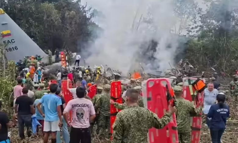 కొలంబియాలో ఘోర విమాన ప్రమాదం జరిగింది. పెరూ సరిహద్దులో ఆర్మీకి చెందిన సైనిక విమానం టేకాఫ్ సమయంలోనే కుప్పకూలింది. ఈ ప్రమాదం సమయంలో విమానంలో మొత్తం 110 మంది సైనికులు ఉన్నారు.