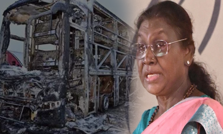 Droupadi Murmu: కర్నూలు బస్సు ప్రమాదంపై రాష్ట్రపతి ద్రౌపది ముర్ము తీవ్ర దిగ్భ్రాంతి వ్యక్తం చేసింది. ప్రమాదంలో ప్రాణ నష్టం జరగడం తనను తీవ్రంగా కలచివేసిందని రాష్ట్రపతి ముర్ము అన్నారు. ఈ ఘటనలో ప్రాణాలు కోల్పోయిన వారి కుటుంబ సభ్యులకు నా ప్రగాఢ సానుభూతి తెలియజేస్తున్నాను గాయపడిన వారు త్వరగా కోలుకోవాలని ఆ దేవుడిని ఆకాంక్షించారు.