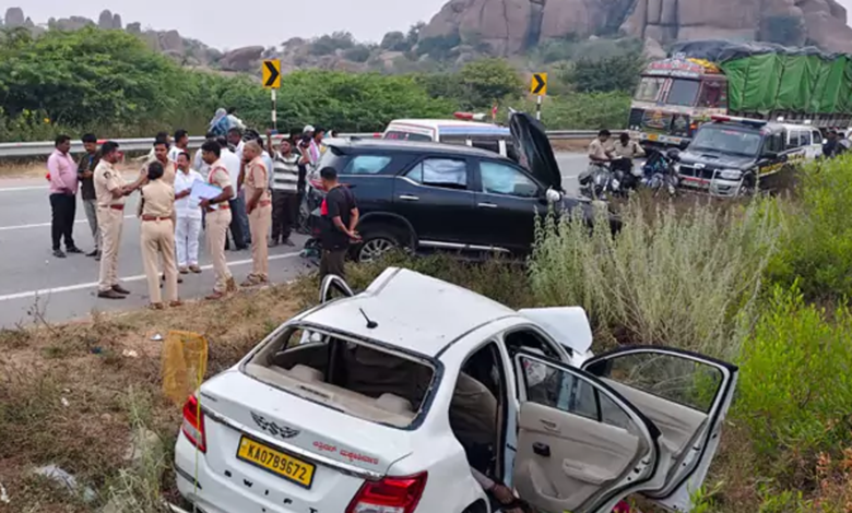 Road Accident: కర్నూలు జిల్లా ఎమ్మిగనూరులో ఘోర రోడ్డు ప్రమాదం చోటు చేసుకుంది. కోటేకల్ వద్ద రెండు కార్లు ఎదురెదురుగా ఢీకొనడంతో ఐదుగురు అక్కడికక్కడే మృతి చెందగా, మరో ఇద్దరు తీవ్రంగా గాయపడ్డారు. క్షతగాత్రులను తక్షణమే ఆదోని ప్రభుత్వ ఆసుపత్రికి తరలించి చికిత్స అందిస్తున్నారు. మృతులను కర్ణాటకలోని కోలార్ జిల్లా చిక్కహోసహళికి చెందిన వెంకటేశ్ (76), మీనాక్షి (32), సతీశ్ (34), బనిత్ (5), రుత్విక్ (4)గా పోలీసులు గుర్తించారు. చిక్కహోసహళి ప్రాంతానికి చెందిన ఏడుగురు మంత్రాలయం వెళ్తుండగా ఈ ప్రమాదం చోటు చేసుకుంది. సమాచారం అందుకున్న పోలీసులు ఘటనాస్థలికి చేరుకుని కేసు నమోదు చేసి దర్యాప్తు ప్రారంభించారు.
