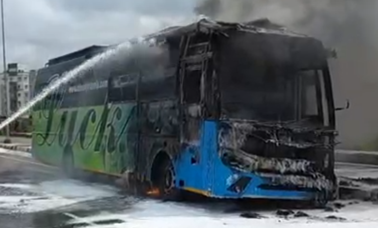 ప్రైవేటు బస్సులో మంటలు.. తప్పిన ప్రాణనష్టం