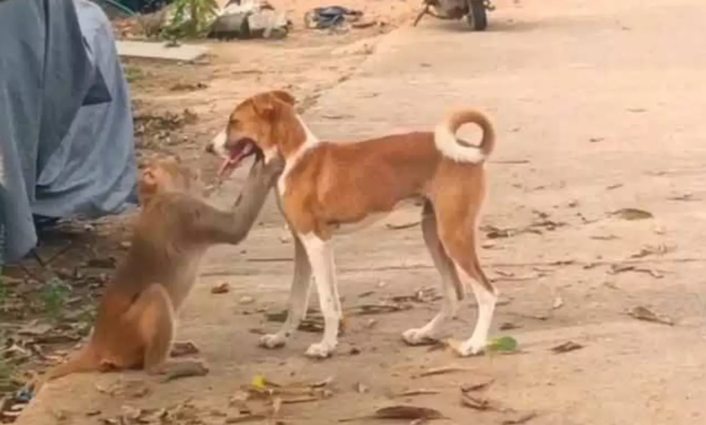 స్నేహమంటే ఇదేరా.. కోతి, కుక్క అనుబంధం
