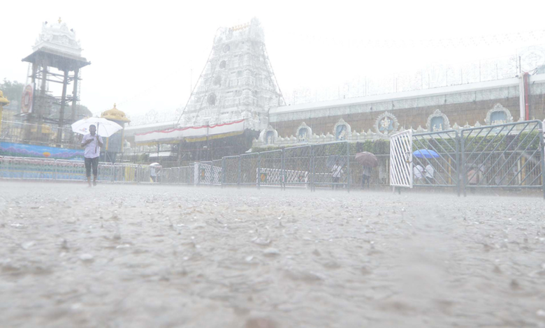 తిరుమలలో భారీ వర్షం కురిసింది. రాత్రి 9 గంటలకు ప్రారంభమైన వాన తెల్లవారుజాము వరకు ఎడతెరపి లేకుండా కురిసింది. జోరుగా కురిసిన వర్షంతో లోతల్లు ప్రాంతాలు, దర్శన క్యూలైన్లు, మాఢవీధులతో పాటు షాపింగ్ కాంప్లెక్స్లో నీరు చేరింది.