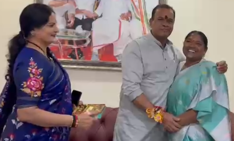 రక్షాబంధన్ సందర్భంగా మంత్రి కోమటిరెడ్డి వెంకట్రెడ్డికి మంత్రి సీతక్క రాఖీ కట్టారు. ఒకరికొకరు స్వీట్స్ తినిపించుకొని రాఖీ పండగ శుభాకాంక్షలు తెలిపారు. అన్న చెల్లెళ్ల,అక్క తమ్ముళ్ళ అని అనుబంధాన్ని చాటే రాఖీ పండుగ ప్రతి ఒక్కరు ఆనందోత్సాహాల నడుమ జరుపుకోవాలని మంత్రి కోమటిరెడ్డి వెంకట్ రెడ్డి ఆకాంక్షించారు.