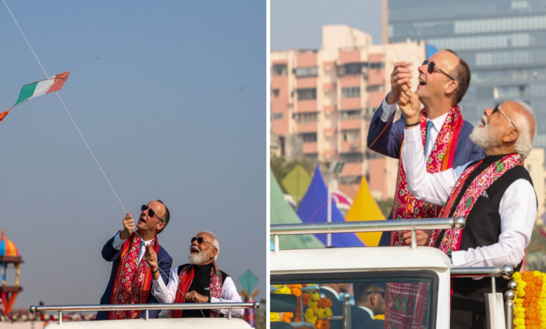 ప్రధాన మంత్రి నరేంద్ర మోదీ సోమవారం అంతర్జాతీయ కైట్ ఫెస్టివల్ను ప్రారంభించారు. ఈ కార్యక్రమంలో జర్మనీ ఛాన్సలర్ ఫ్రెడరిక్ మెర్జ్తో కలిసి ఆయన గాలిపటం ఎగురవేశారు. రెండు రోజుల భారత పర్యటనలో భాగంగా గుజరాత్కు వచ్చిన మెర్జ్, ప్రధాని మోదీని కలిశారు. అనంతరం సబర్మతి నదీతీరంలో జరిగిన అంతర్జాతీయ గాలిపటాల ఉత్సవంలో ఇద్దరు నాయకులు పాల్గొన్నారు. ఈ సందర్భంగా హనుమంతుడి చిత్రంతో ఉన్న గాలిపటాన్ని వారు ఎగురవేశారు.