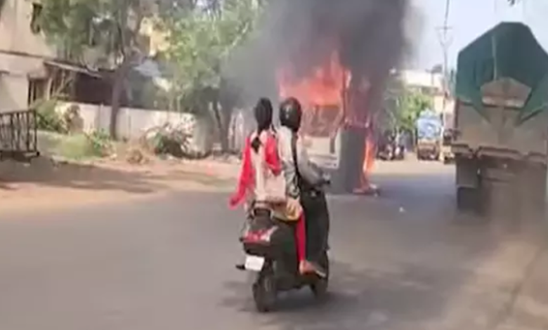 విశాఖలో ప్రైవేటు బస్సు దగ్ధం