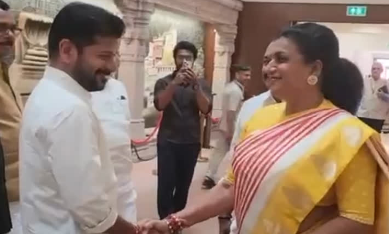 తెలంగాణ సీఎం రేవంత్ రెడ్డి ఢిల్లీ పర్యటనలో ఆసక్తికర సన్నివేశం చోటు చేసుకుంది. పార్లమెంట్‌లో రేవంత్ రెడ్డి, వైసీపీ నేత రోజా కలుసుకున్నారు. ఒకరికొకరు షేక్ హ్యాండ్ ఇచ్చుకున్నారు. కొద్దిసేపు స్నేహపూర్వకంగా మాట్లాడుకుంటూ యోగక్షేమాలు అడిగి తెలుసుకున్నారు. అక్కడ ఉన్న ఇతర నాయకులు ఈ దృశ్యాన్ని ఆసక్తిగా తిలకించారు.