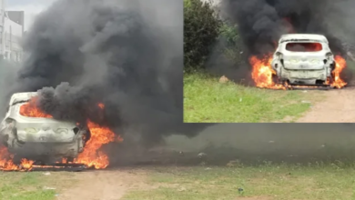 ఇంటి బయట పార్క్ చేసిన కారులో మంటలు