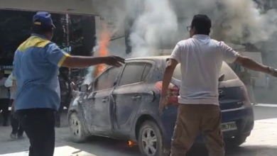 ఎర్రమంజిల్ పెట్రోల్ బంకులో కారులో మంటలు