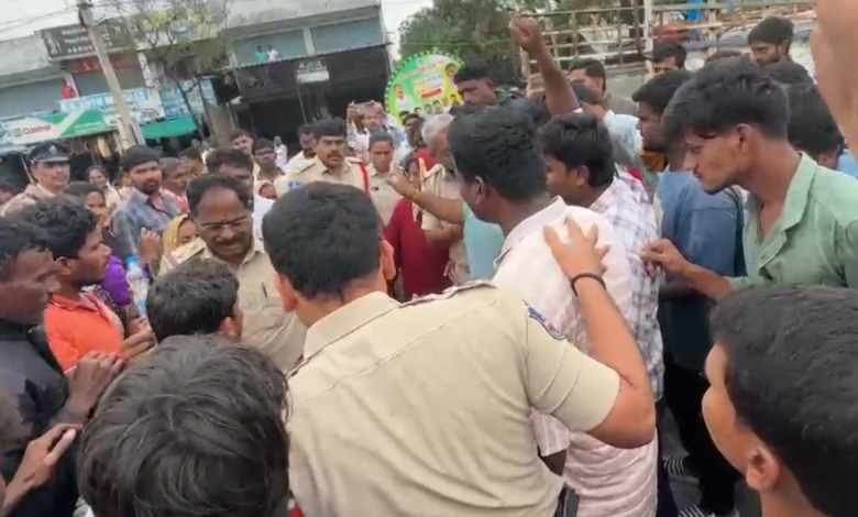 లింగం మృతదేహంతో ఎమ్మెల్యే క్యాంప్ కార్యాలయం వద్ద గ్రామస్తులు ఆందోళనకు దిగారు. ఎమ్మెల్యే క్యాంప్ కార్యాలయంలోకి చొచ్చుకెళ్లిన బీజేపీ కార్యకర్తను పోలీసులు అడ్డుకున్నారు. మృతుడి కుటుంబానికి 50 లక్షల ఎక్స్గ్రేషియా ఇవ్వాలని గ్రామస్తులు డిమాండ్ చేశారు.