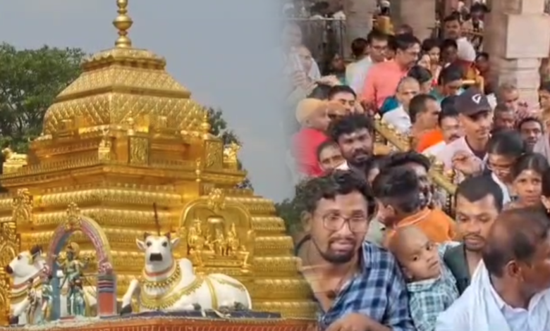 Srisailam: నంద్యాల జిల్లా ప్రముఖ పుణ్యక్షేత్రమైన శ్రీశైలం క్షేత్రానికి కొనసాగుతున్న భక్తుల రద్దీ. సోమవారం శివునికి ఎంతో ప్రీతికరమైన రోజు కావడం పైగా వరుస సెలవు రావడంతో శ్రావణమాసంలో భ్రమరాంబ మల్లికార్జున స్వామి వార్లను దర్శించుకోవడం శుభ ప్రధమణి భక్తులు భావిస్తారు. నంద్యాల జిల్లా ప్రముఖ పుణ్యక్షేత్రమైన శ్రీశైలం శ్రీ భ్రమరాంబ సమేత మల్లికార్జున స్వామి అమ్మవార్ల దేవస్థానంలో భక్తుల రద్దీ అధికంగా పెరుగుతూ ఉండడంతో మల్లన్న స్పర్శ దర్శనాలకు నిలుపుదల చేసిన అధికారులు మల్లన్న స్పర్శ దర్శనాలు,గర్భాలయ అభిషేకా ఆర్జిత సేవలను నిలుపుదల చేస్తున్నట్లు ఆలయ ఈవో ఎం శ్రీనివాసరావు తెలిపారు.