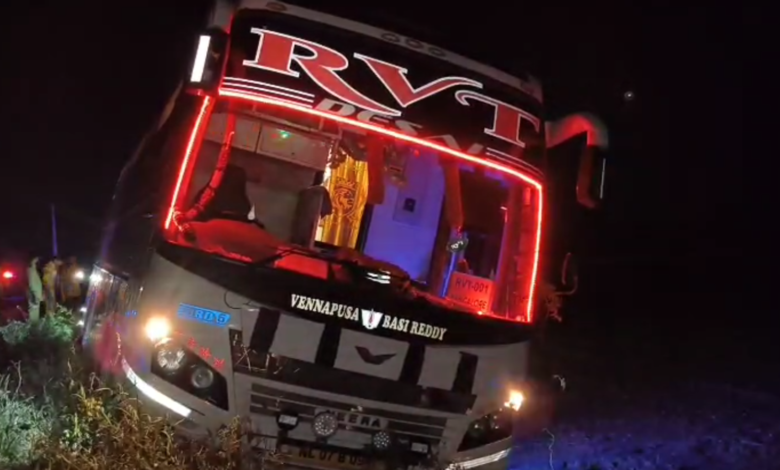 అదుపు తప్పి ముళ్ల కంపలోకి దూసుకెళ్లిన బస్సు