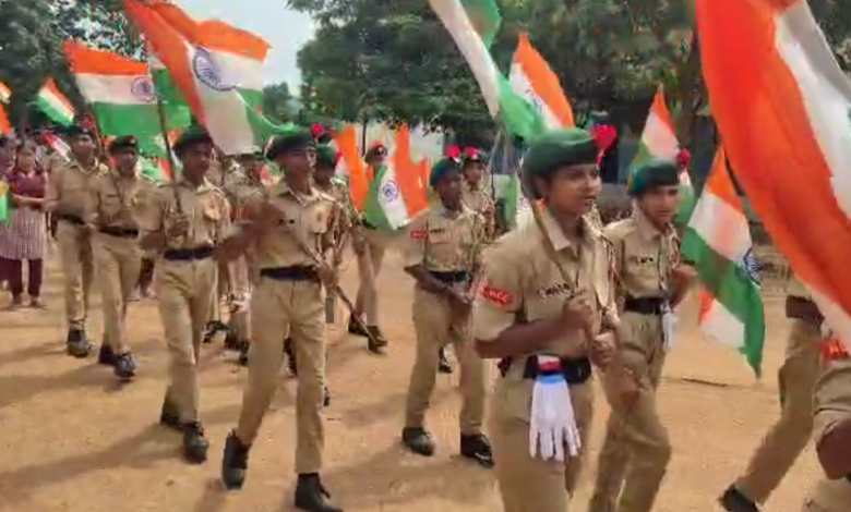 నిర్మల్ జిల్లా కడెంలో జిల్లా పరిషత్ ఉన్నత పాఠశాల విద్యార్థులు హర్ ఘర్ తిరంగా ర్యాలీ నిర్వహించారు. జాతీయ సమైక్యతను చాటడం, దేశభక్తిని పెంపొందించడమే ప్రధాన లక్ష్యంగా ఈ ర్యాలీ నిర్వహించారు. ప్రతి పౌరుడు దేశం కోసం అంకితం అయ్యేలా ఈ ర్యాలీని దేశవ్యాప్తంగా నిర్వహిస్తున్నారు. రేపటి నుంచి దేశవ్యాప్తంగా సెల్ఫీ విత్ తిరంగా కార్యక్రమం నిర్వహిస్తారని NCC అధికారి వినోద్ కుమార్ తెలిపారు.